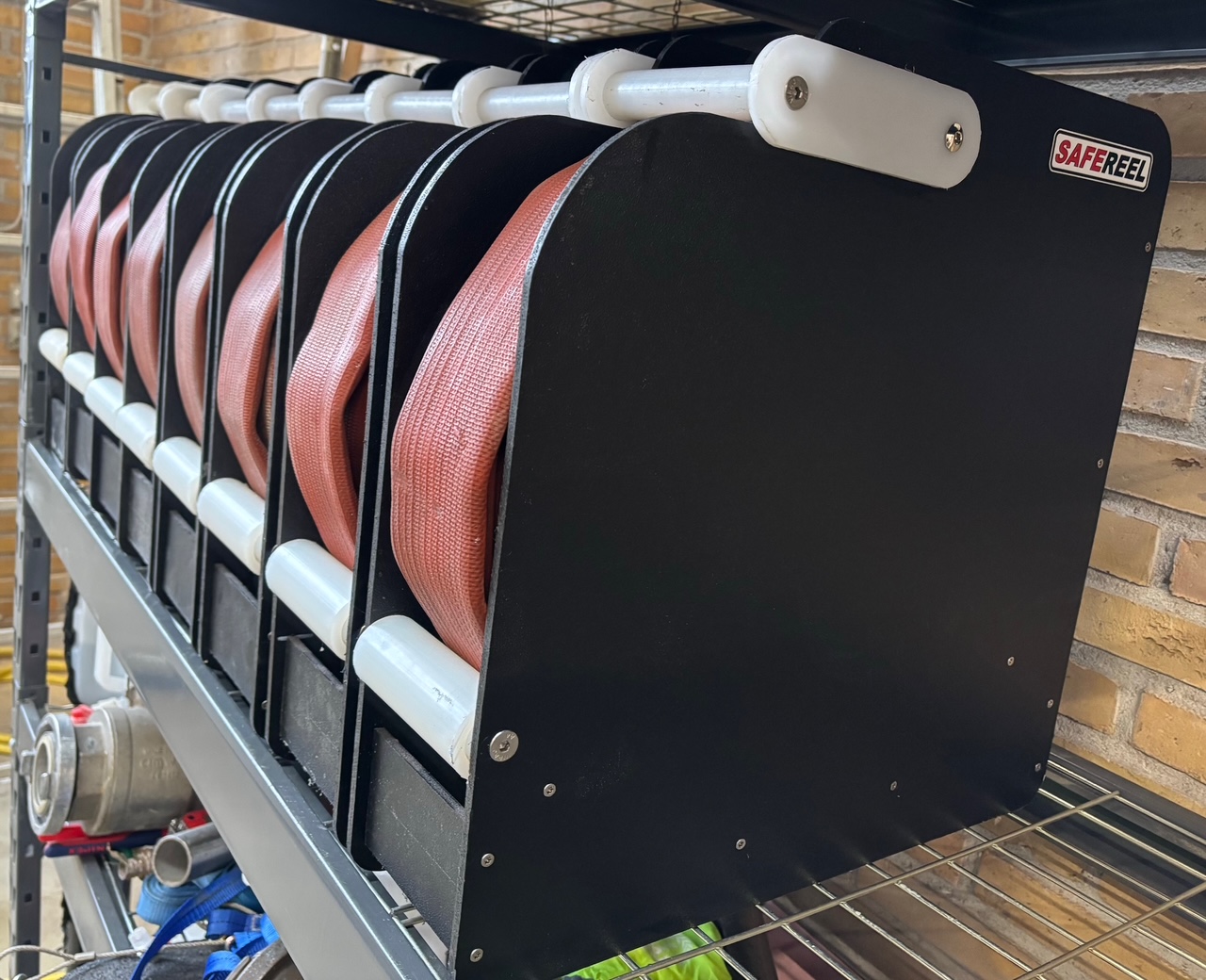 - Med en kassette fra SAFEREEL forlænges slangernes holdbarhed, og sikrer en ergonomisk forsvarlig håndtering af slangerne.
